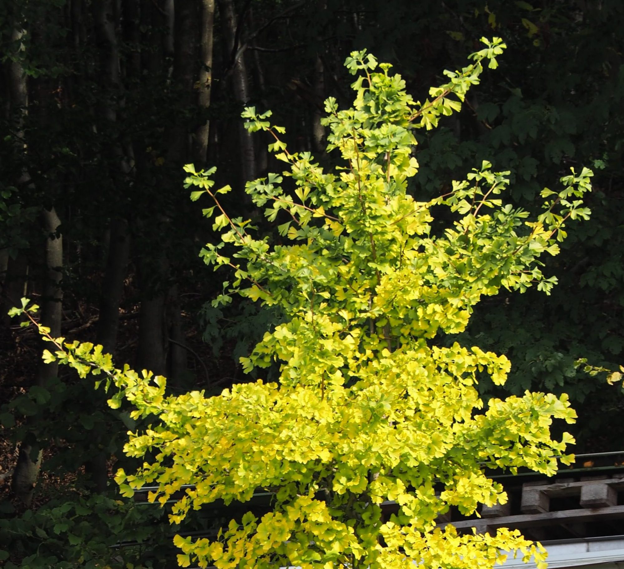 Bei diesem Ginkgo handelt es sich um einen männlichen Baum. Denn ein Ginkgo ist zweihäusig getrenntgeschlechtig (diözisch), es existieren also männliche und weibliche Pflanzen. Die Bäume unterschiedlichen Geschlechts sind bis zur Geschlechtsreife, die erst im Alter zwischen 20 und 35 Jahren oder gar später erfolgt, äußerlich nicht voneinander zu unterscheiden.